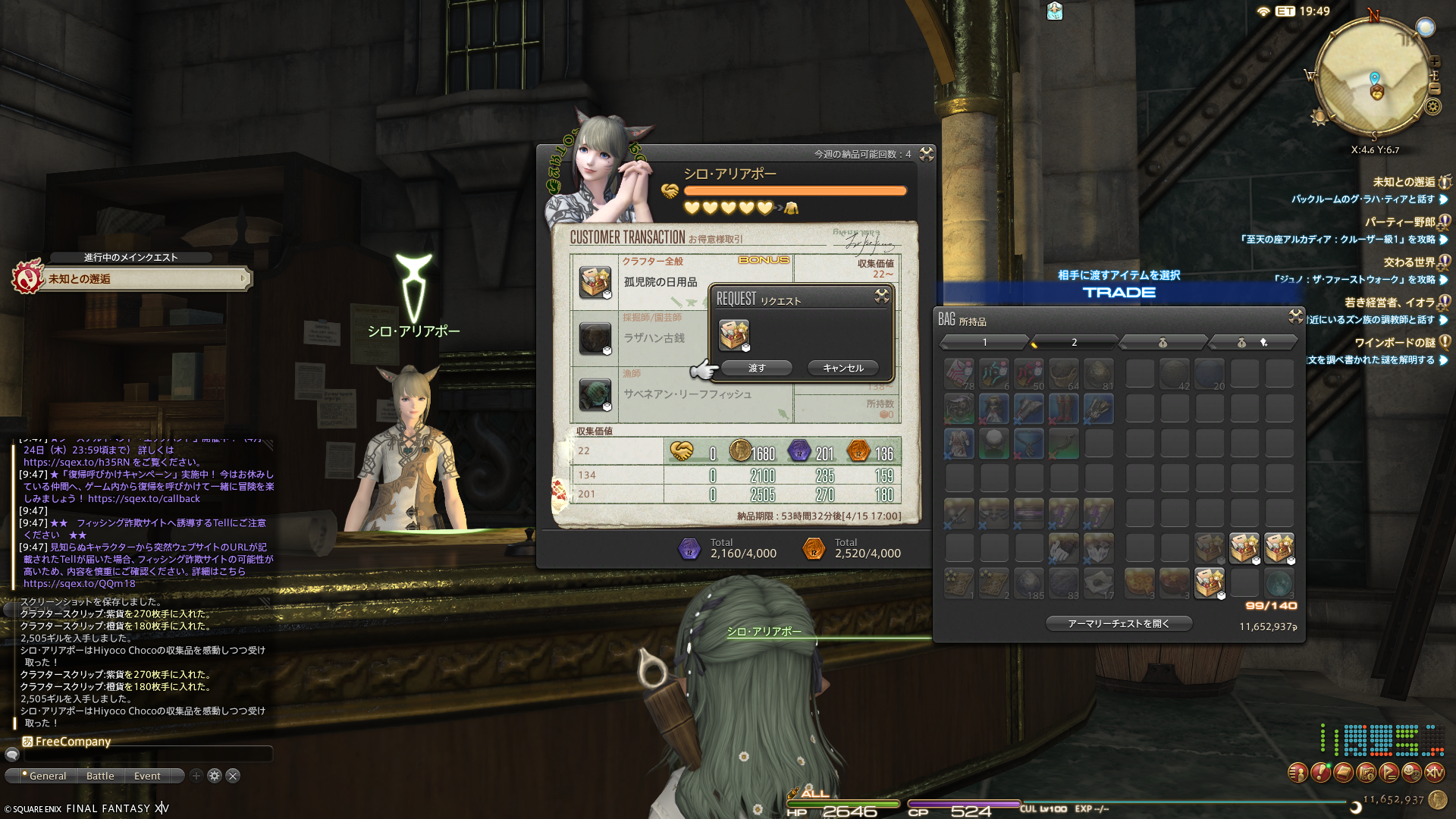 黄金メインクエストをサブキャラ同士で一緒に進めているFCメンバーさんと、アルカディアのクルーザー級に行こうとしたのですが、いざ申請しようとしたら…ああああっアイテムレベルが足りないぃぃぃ~~~!