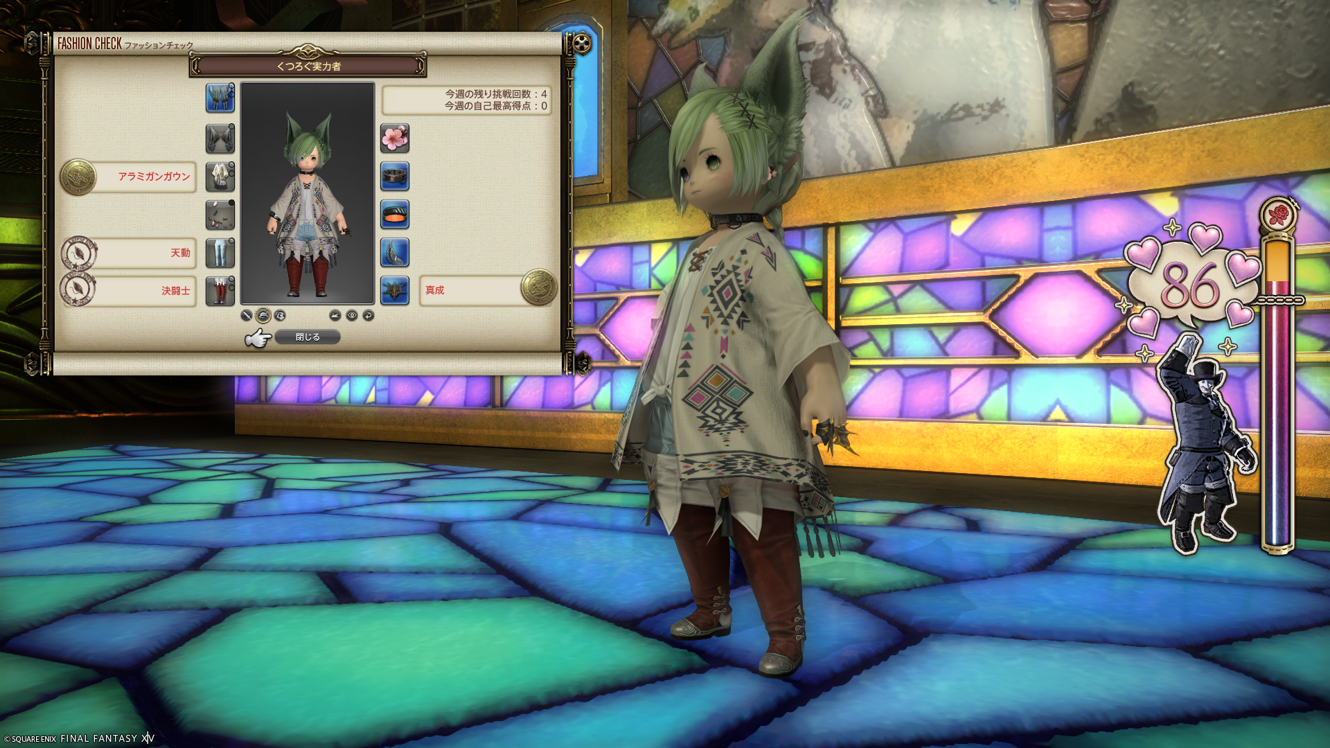 ファッションチェックはたまたま今回指定の指装備がドレッサーに突っ込んであって助かりました。むかーしむかし突っ込んでそのままになってたの。