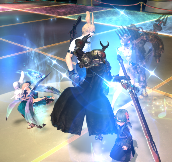 全員違うサングラスしてるー!しかし、おひとり記念撮影前に出てしまっていて写っておらず。いつも、コンテンツに突入したときは、メンバー紹介をスクリーンショットで撮ってあるのでそれを使って欠席者っぽく加工したりしているのですが、ノーマルレイドってすぐに開始になっちゃうから撮影の間がなくて撮れていないことが多いんですよね。今回もメンバー紹介は撮れておらず。