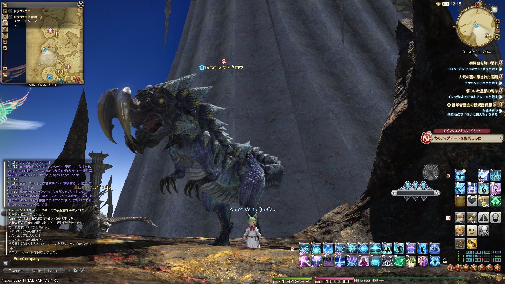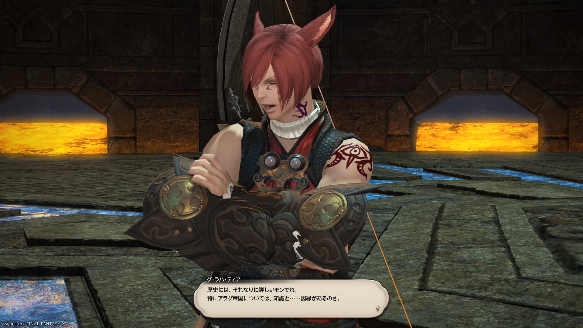 今のメインキャラクターが誕生するずっとずっと前、新生サービス開始時に誕生した初代キャラクター。ずっと放置していたので、新生ストーリーも終わっていなかったのですが、イベントの報酬だけもらっておこうと思ってログインしたついでにほんとにちょっとだけメインクエストを進めたりして、ようやくクリスタルタワーまで進みました。