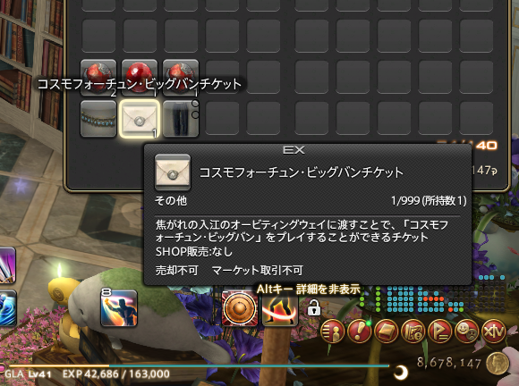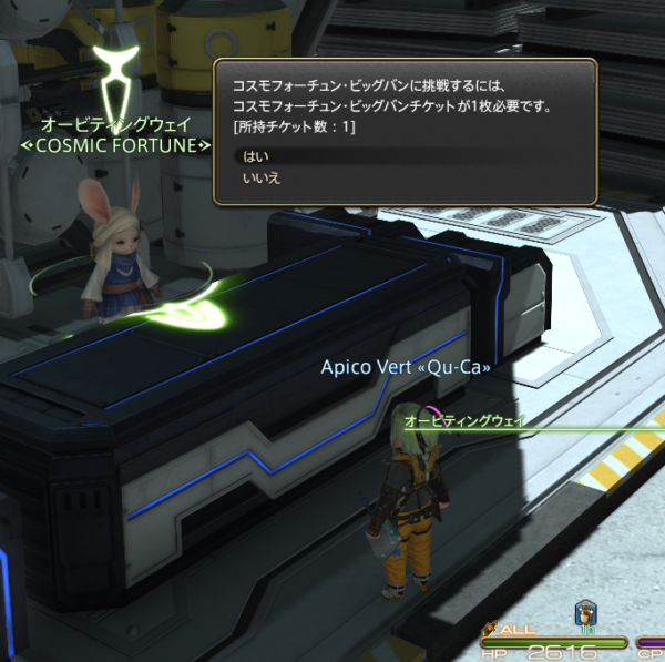 コスモフォーチュン担当のレポリットちゃんのところに行くと、コスモフォーチュン・ビックバンに挑戦するという選択肢が。