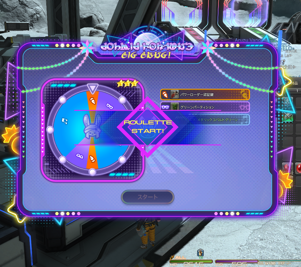 2種のルーレットから選べるのですが、報酬が比較的いいアイテムになっているようです。