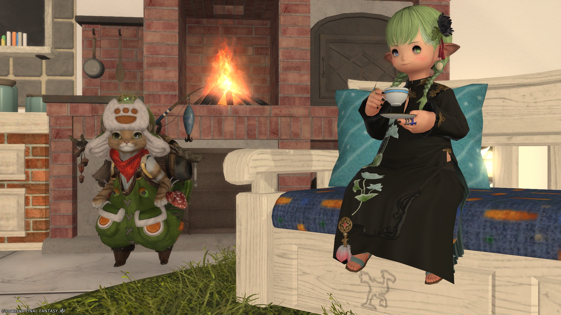 ピルグリム・トラバースでもらえるこちらのエモート、ようやくもらってみたけどお茶を飲んだ後にほわぁぁぁって感じの表情になるのが何とも言えずよいですね。