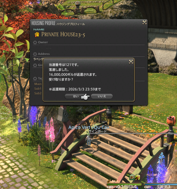 日付が変わってから、申し込んでいたMサイズの土地の抽選結果を見にゆくと……