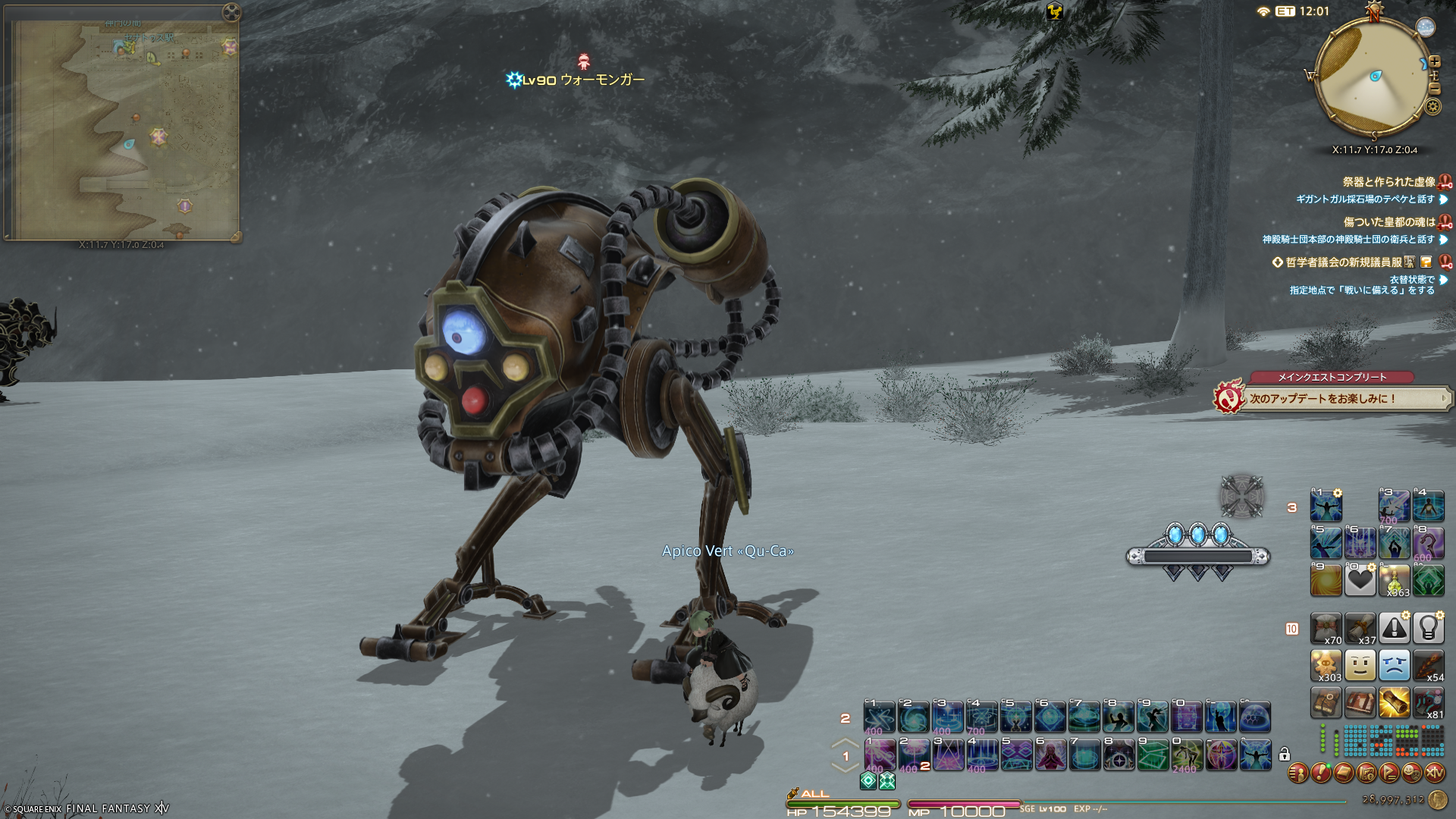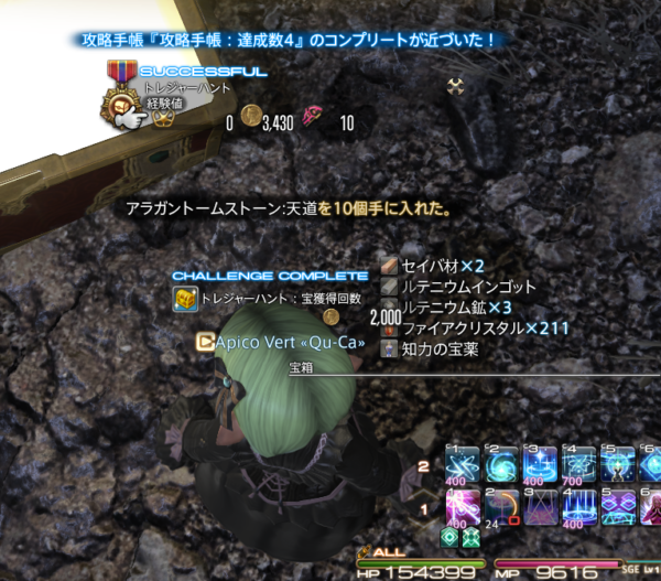 最後の方の層で、巡回がものすごく多くて、全滅の危機だったのですが、さすがアウラさんとミコッテさん(は転がったんだけど)の機転でなんとか全滅は免れました。お二人が割とアイテムとかさくさく使ってくださるのでおんぶにだっこで寄生しておりますわたくしでした。