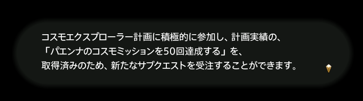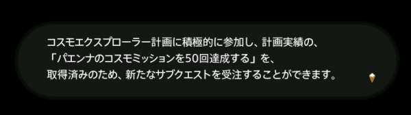 今日はログインが遅かったので、さくっとパエンナ活動をして終わりって思っていたのだけど、昨日発生したパエンナ施設完成クエストの後、他にも発生したクエストがあったので、そちらのクエストをしておくことにー。