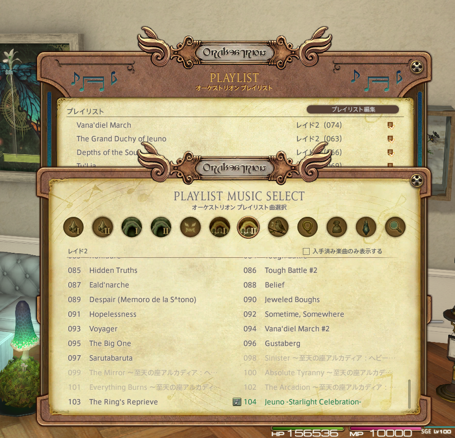 ついでに手持ちの楽譜をいろいろ交換したら、サンドリアでもらえる楽譜をコンプリート出来ました。元FF11プレイヤーなので、マイハウスにはFF11関連のBGMを設定しがちなのですが、タイトルだけではどんな曲かピンと来なかったりするのですよねー。フィールド名ならわかるのだけど……。