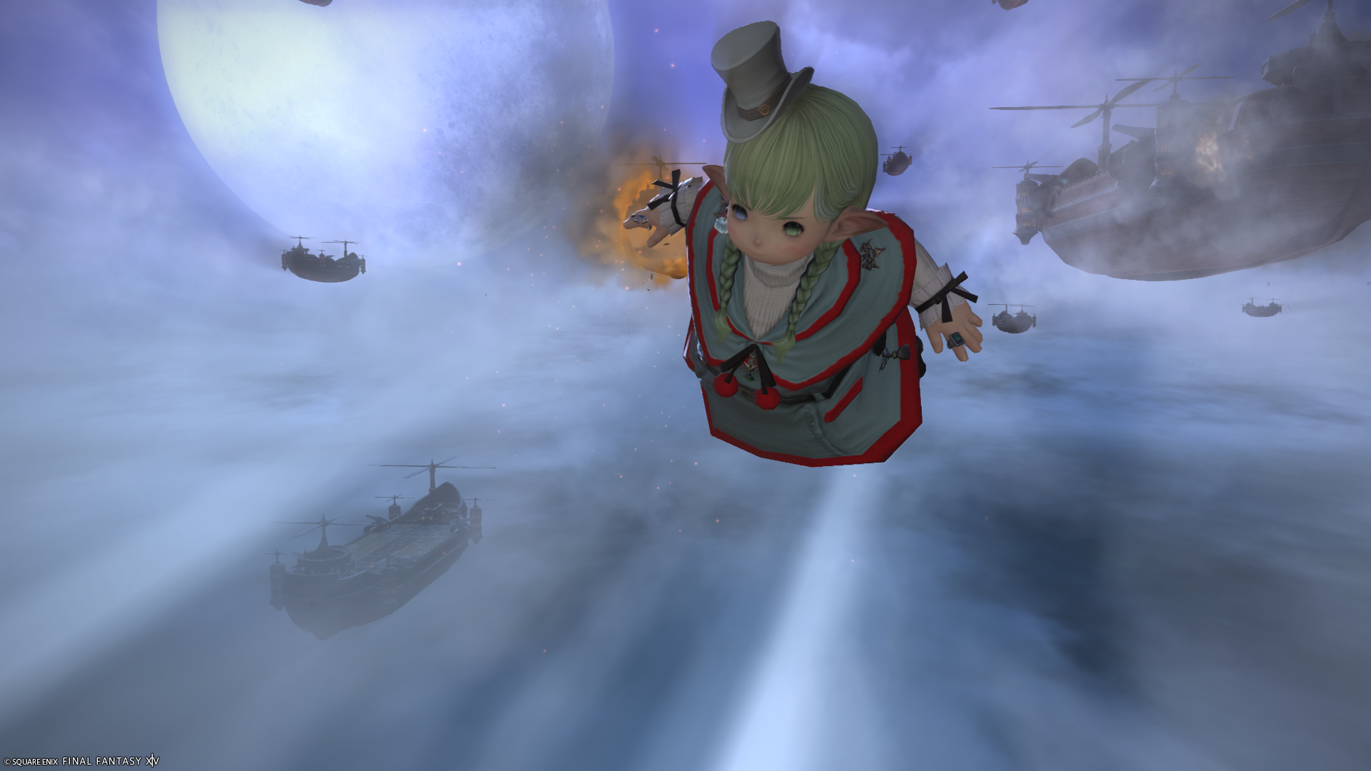 サンドリアに来ると、終わってから飛空艇乗り移り撮影チャレンジをしております。飛空艇から飛空艇に乗り移っているところをかっこよく撮影したーい!ってことで、本日もチャレンジ。月を背景にするのがこだわり。