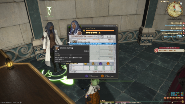 お得意様取引、最近はギャザラーで納品していたのですが、先日のパッチ7.4で追加された新しい食事を作るのに必要なアイテム交換のため、クラフターで納品です。新しい食事、キャラメルポップコーンなんですよー。おいしそう。