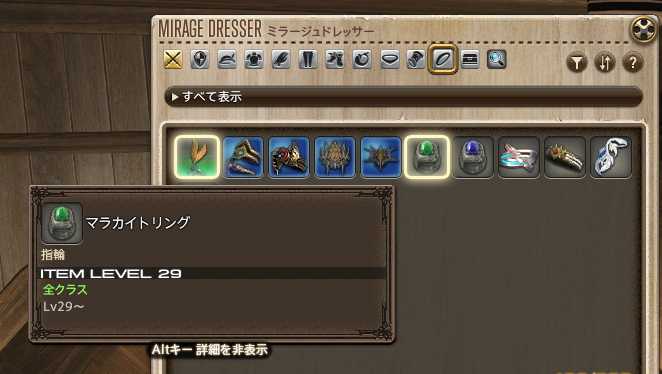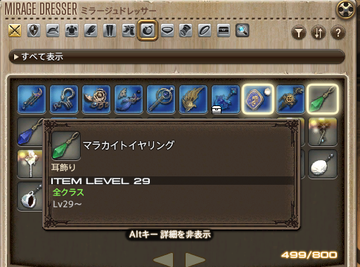 アクセサリー類はミラプリ用のLv1装備が少なかったので、今まであまりドレッサーに入れてなくて、ミラプリのときも未登録にしてることが多かったのですが……