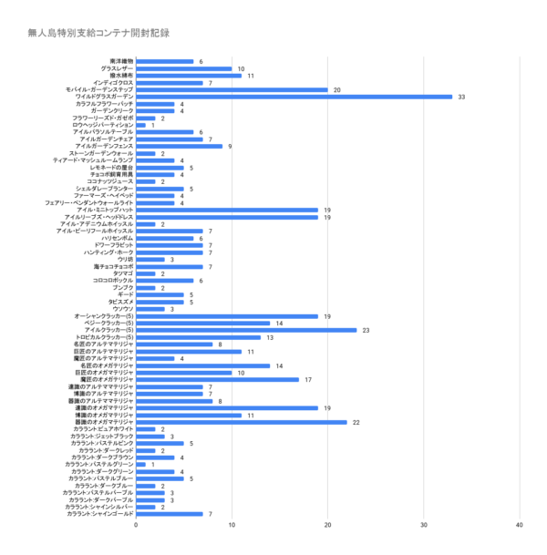 さて、先日無人島のお手入れでいただいた無人島支給コンテナで、コンテナ開封記録が500になったので結果をぺたり。