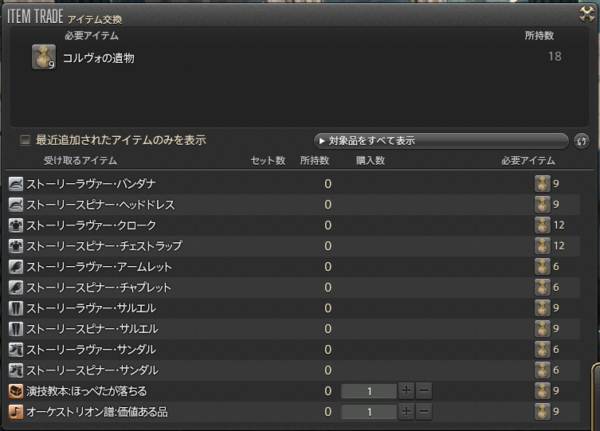 今日で少しコルヴォの遺物が貯まったので、欲しかったほっぺたが落ちるエモートもらってみました。衣装とか全部そろえようと思ったら結構周回しないとだなぁ。