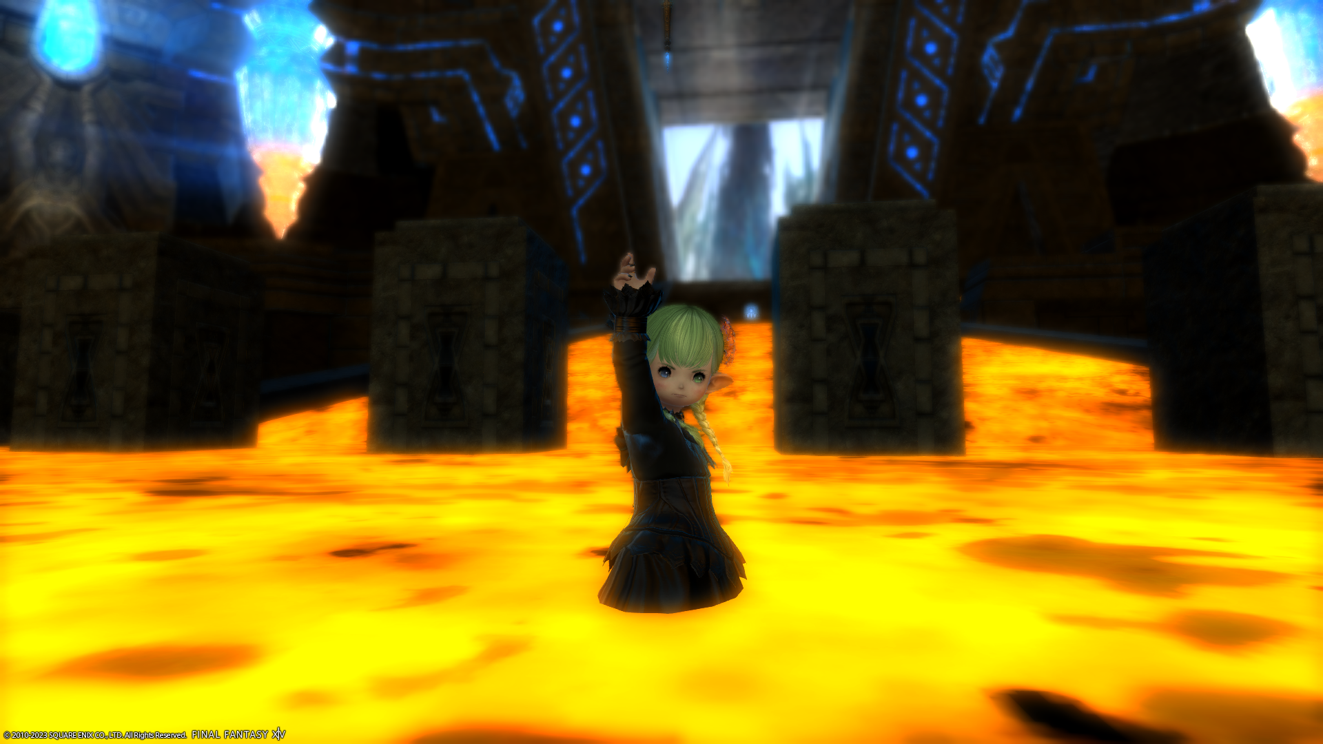 マグマ?に入って決めポーズをするの図。