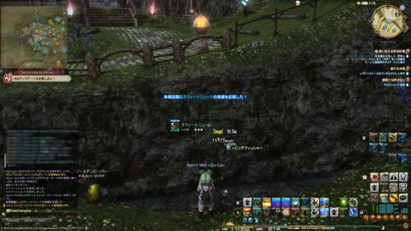 エオルゼアの各地のお天気を調べながらあちこち回ったのですが、本日釣れた対象のお魚さんは、上の写真のスウィートニュートだけでした。こちらは分解すると、防水綿布が出るかもしれないお魚さんです。