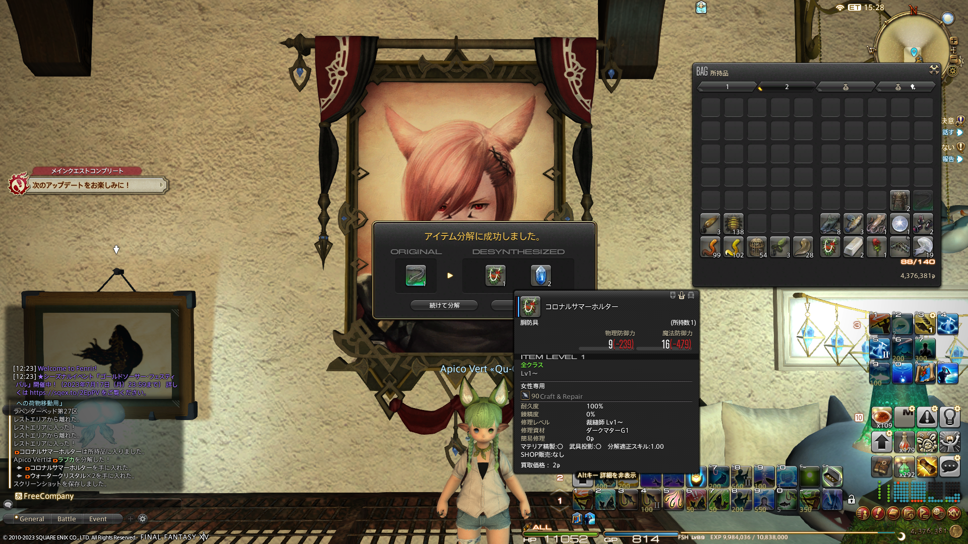 攻略手帳にエウレカでの目標がいくつかあるので、それらをこなしつつ、途中POPしたNMも倒しつつ、1日でエレメンタルレベル19まで上がりました。フリーカンパニーメンバーさんにめちゃサポートしていただきました。ありがとうございました。