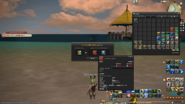 ということで、分解で水着が出てくるかもしれないお魚のヌシさん釣りへ。欲しい水着は残すところレッドサマーパレオのみとなりました。ミストヴィレッジで釣れるヌシ分解で得られるのだけど、ヌシが釣れる時間が4:00~6:00と、とっても短いのですよねー。