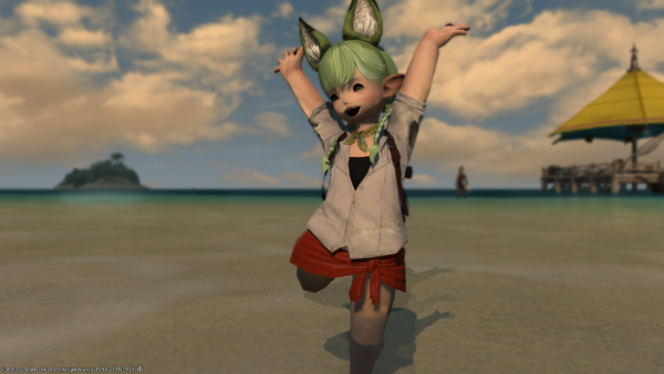 下はデニムのショートパンツで健康的な感じのミラプリにしました。ララちゃん胸が平地すぎて、なんならミコッテ♂さんの方が…。