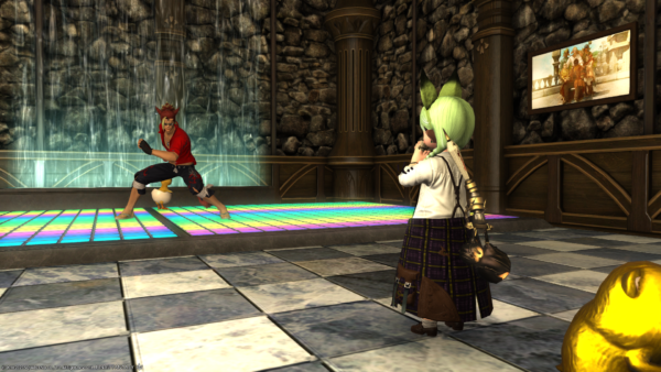 フリーカンパニーメンバーさん、さっそく猛き光の降臨というちょっとカッコよく決めるエモートを買ってらっしゃいました。
