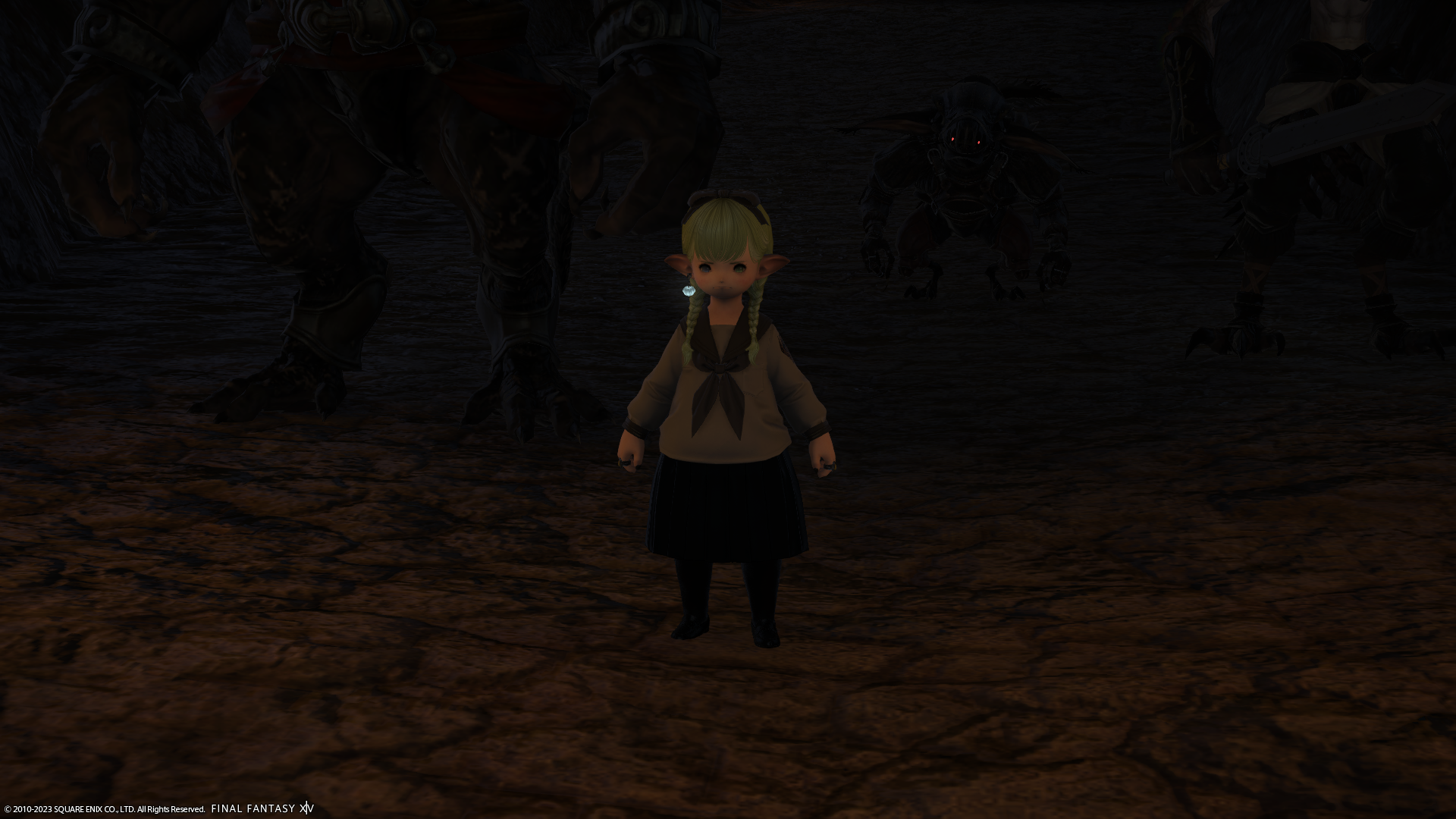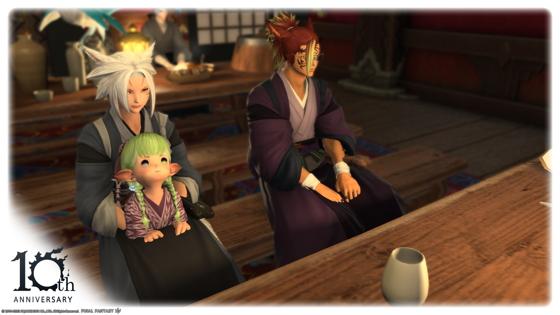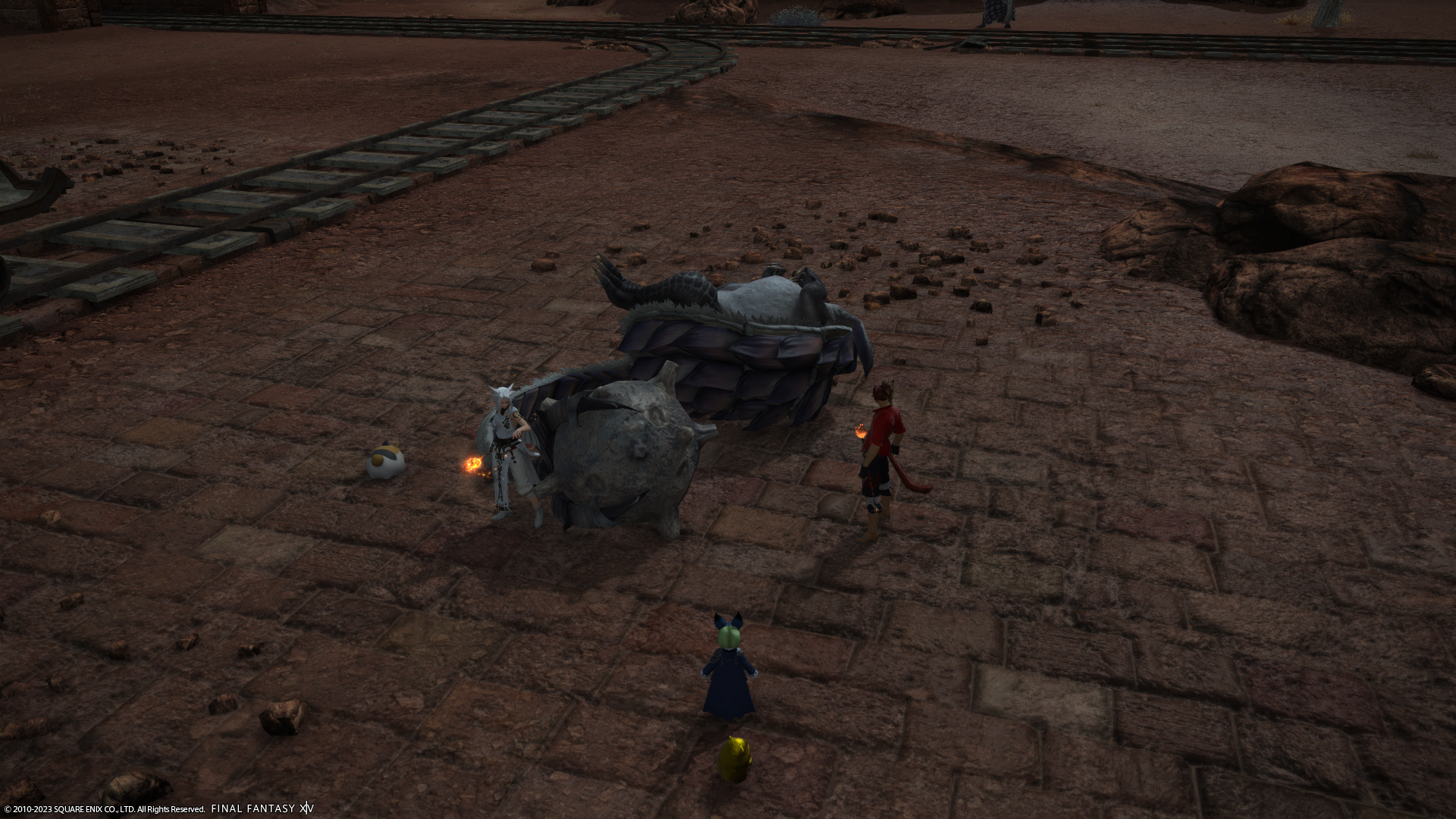 カップルが仲良くしていたので(この前にも別のところでお見かけした)、負けじとミコッテさんの膝に座ってみたよー。