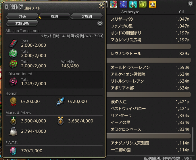 ちなみに、転送網利用券、984枚となってますが(上の画像右下)、リテイナーに999枚預けているので、もうすぐ2000枚達成です。これからもがんばって貯めようと思います。うむ。