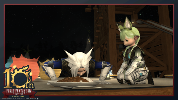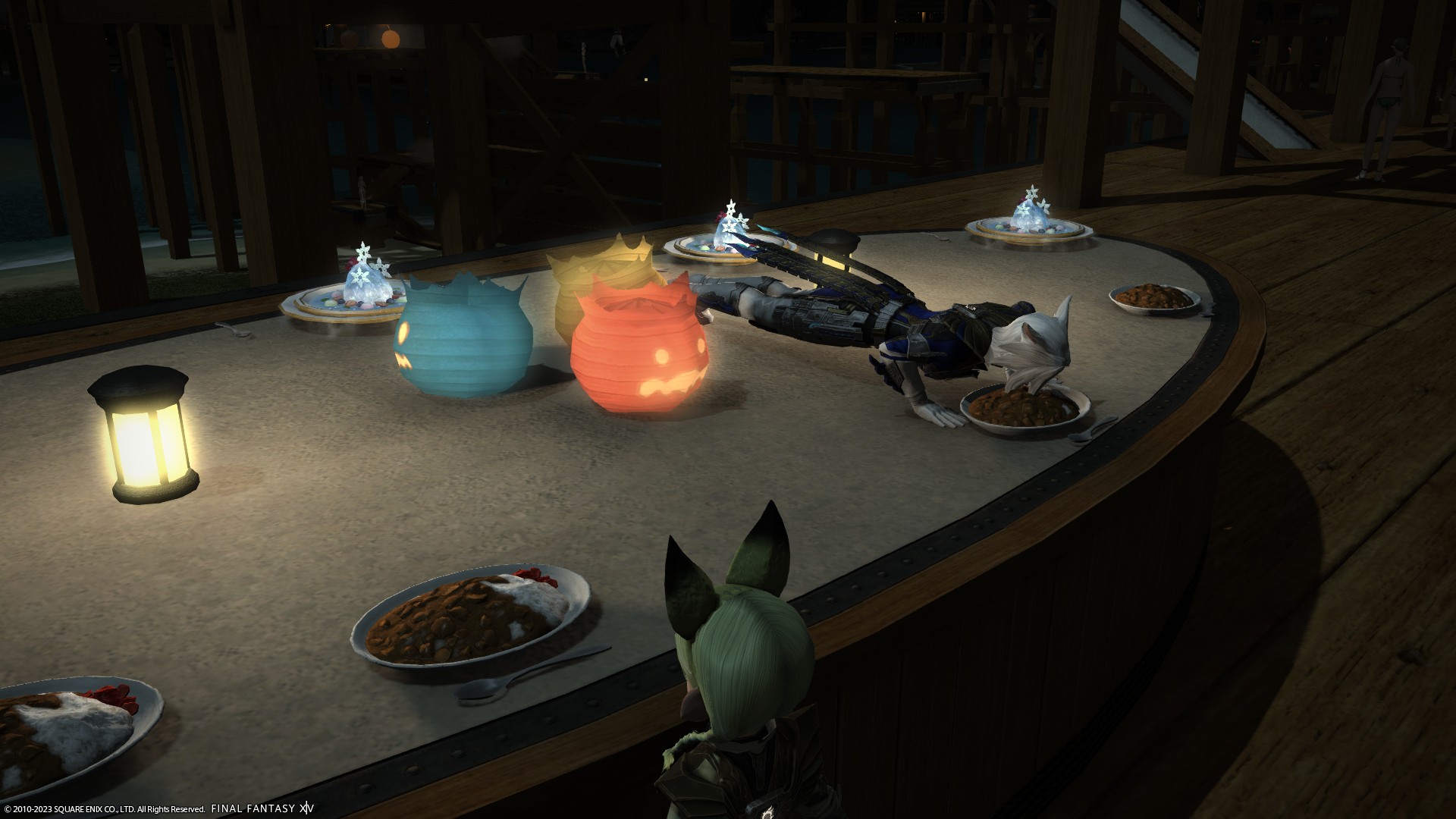 会場にあったカレーを個性的な食べ方をするミコッテさん。