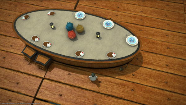 カレーとおやつが用意されているテーブルに、ララフェル用の踏み台がちゃんと置かれてました。