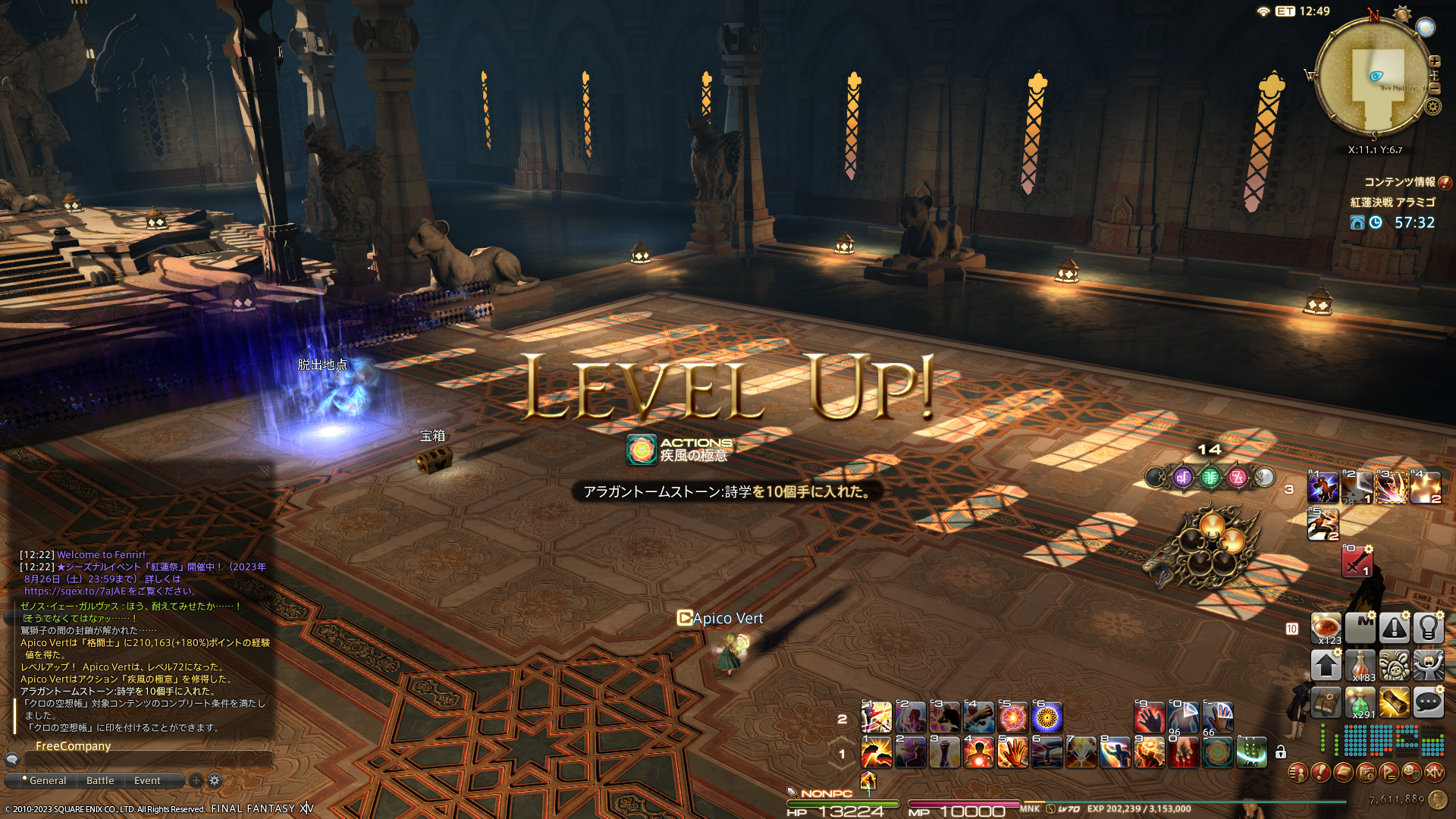 モンクのレベルが72になりました。