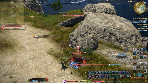 そうそう、道中ちょっと困ったのが「イレース」でした。通常、ヒーラーさんの場合、相手を指定してイレースできるのだけど、青魔導士のイレースはイグジュビエーションという自分中心の範囲青魔法なのです。しかもやや範囲が狭い。