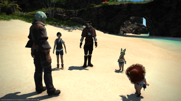無人島で新たに発生したクエスト(前回の無人島アップデートのクエストですが)進行中、ビーチバレーでアタックを決めようとするララフェル。