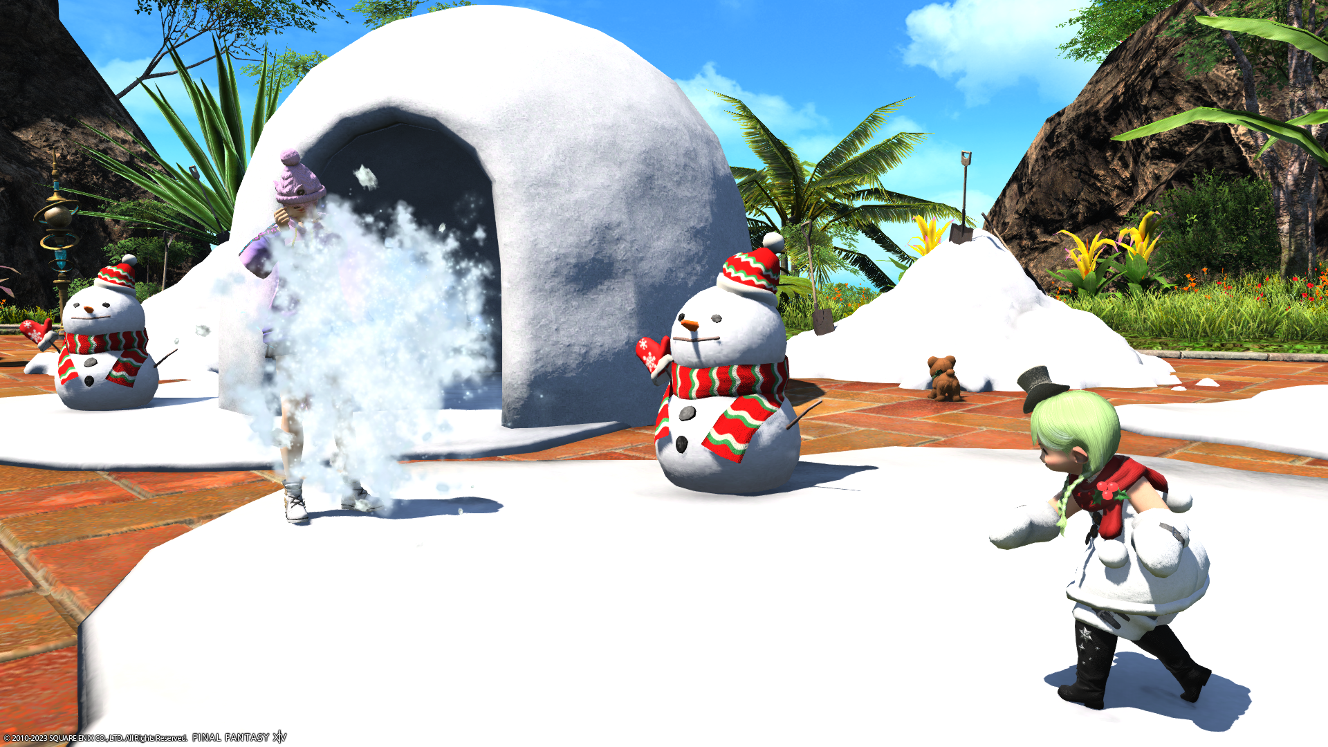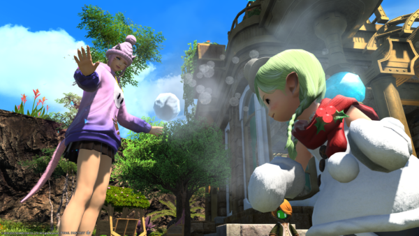 あざといミコッテさんに雪玉ぶつけ!