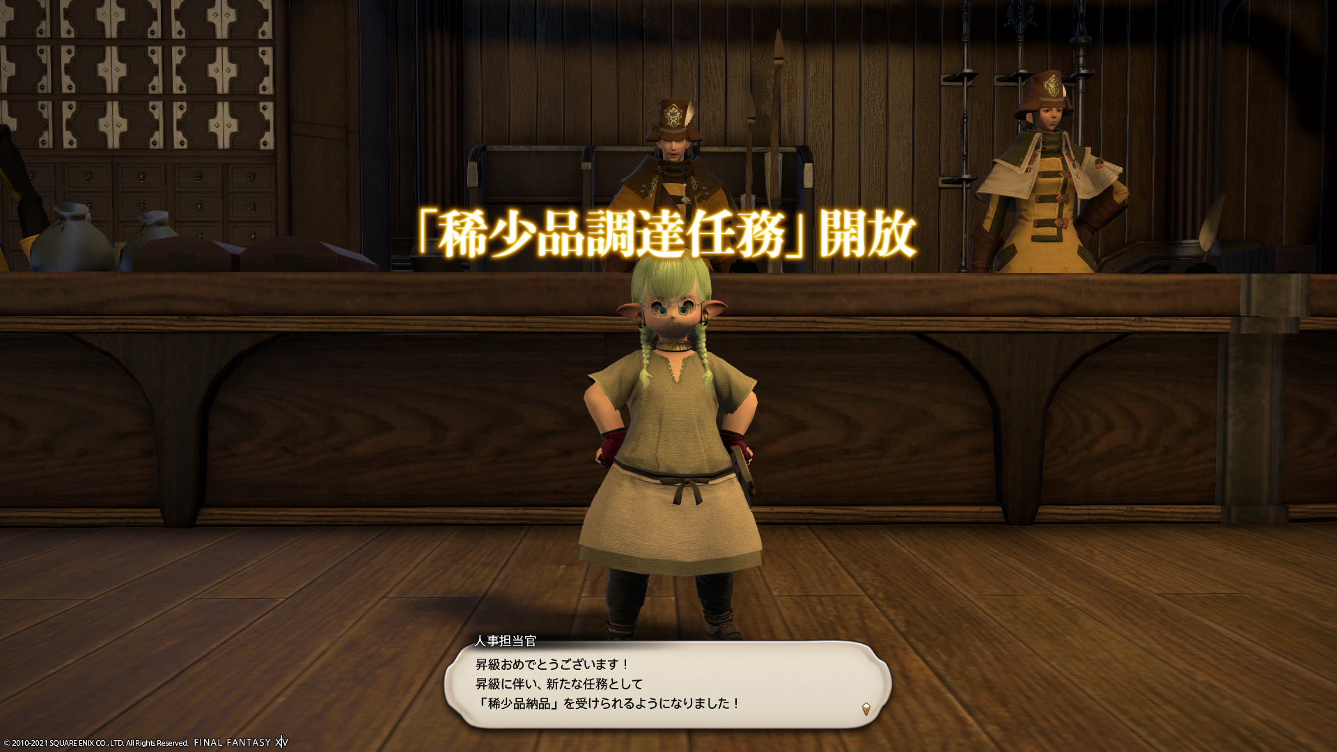 クラフターで作ることもできるし、リーヴの報酬でいただけたりするけれど、軍票交換がおてがるそう~と思ったけど、階級が低くてまだ交換できず…。