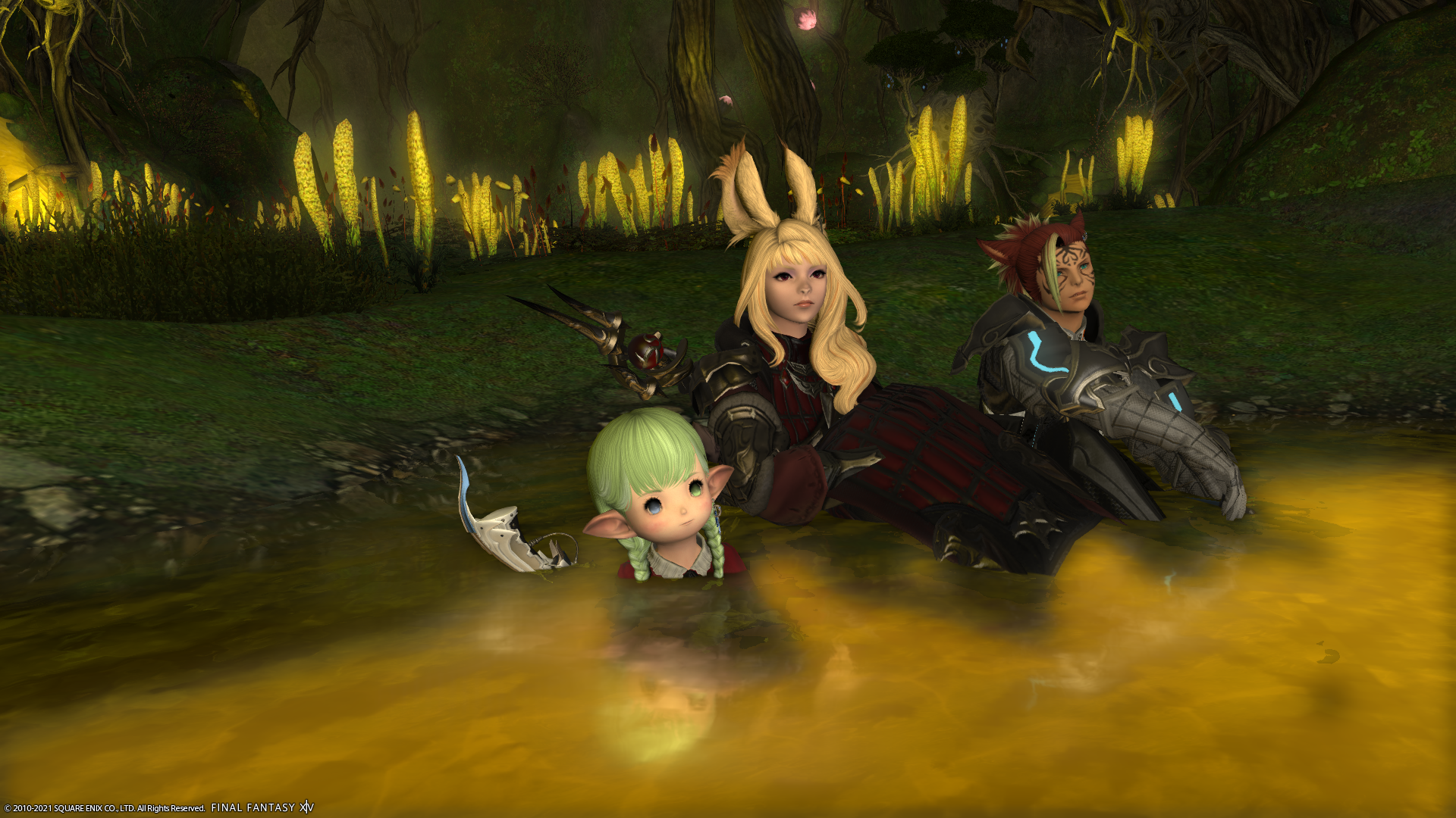 激しく暴れているLSの方をグループポーズで撮影しようとしたけど、WS?的なのは再生されないのですかね…。ミコッテさん棒立ちで、フラワーシャワーだけ撒かれてました。
