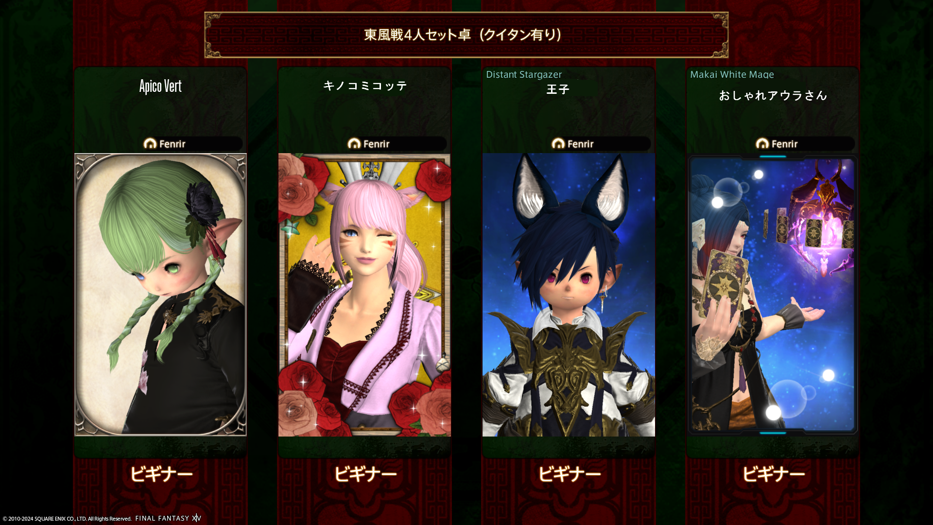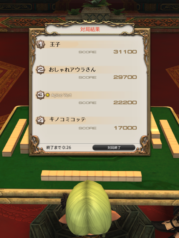 後からログインなさってきたおしゃれアウラさんが、コンテンツファインダー申請中になっていたので、よし3人で同じのに申請しよう!とか話していたら、なんと申請していたのはドマ式麻雀というではないですか。人数ちょうどいいしみんなでしてみようって話になったのですが、問題は…