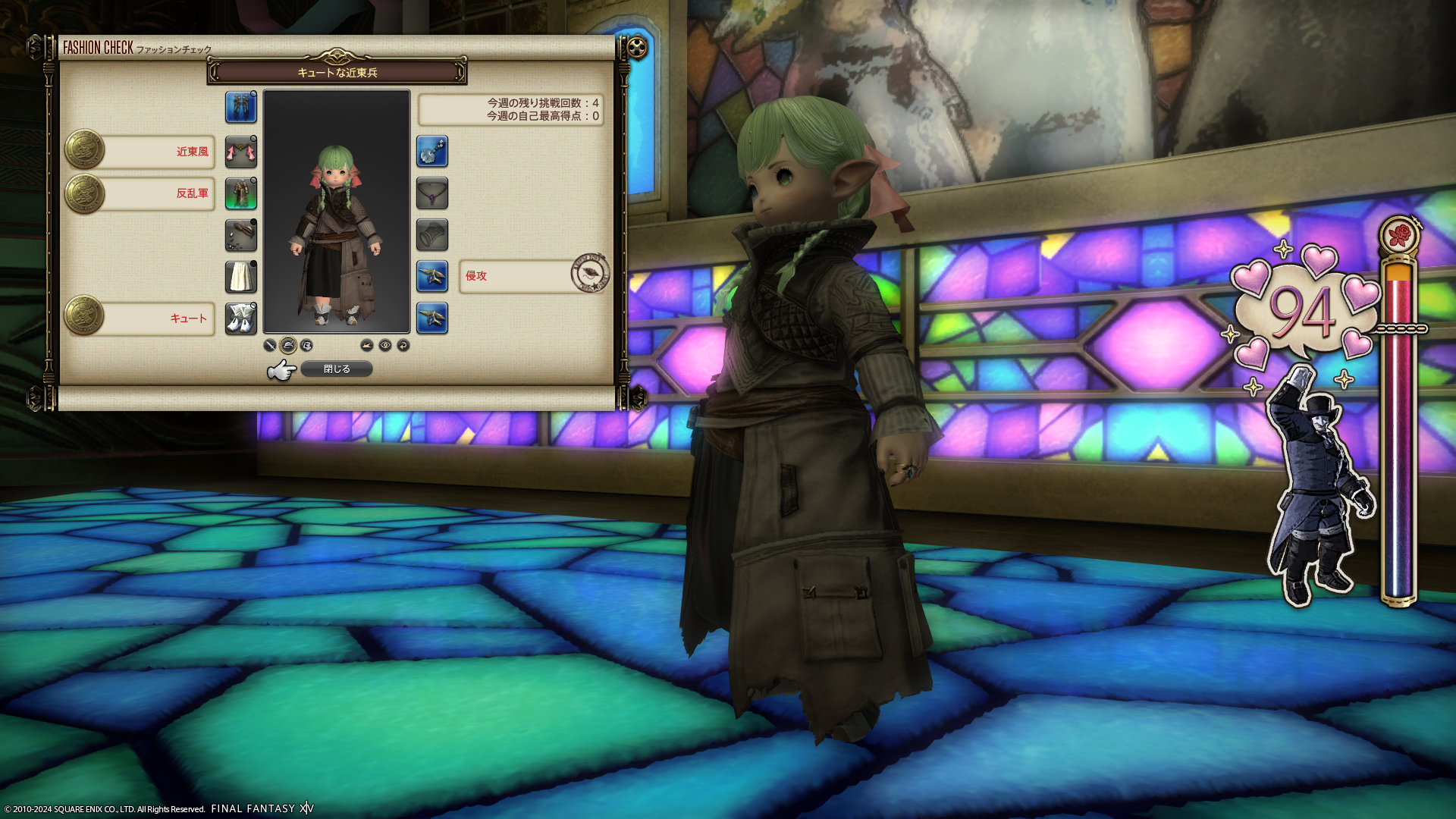 謎のコーディネイトで今週のファッションチェックを94点でクリア。