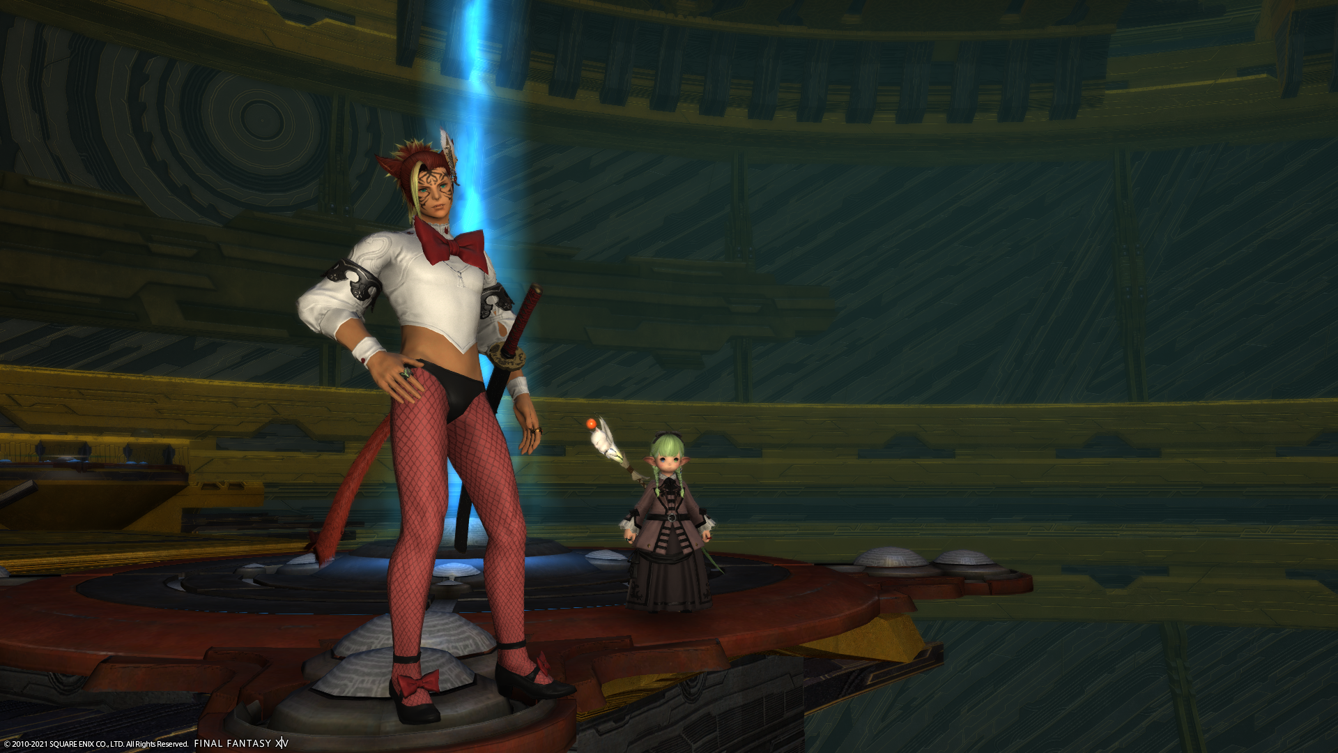 赤魔道士の装備って優遇されてるー!かっこいい装備のでかっこよく撮りたいけど、事前のエモートのせいでおかしな人として撮影されてしまうミスラ♂さん…。