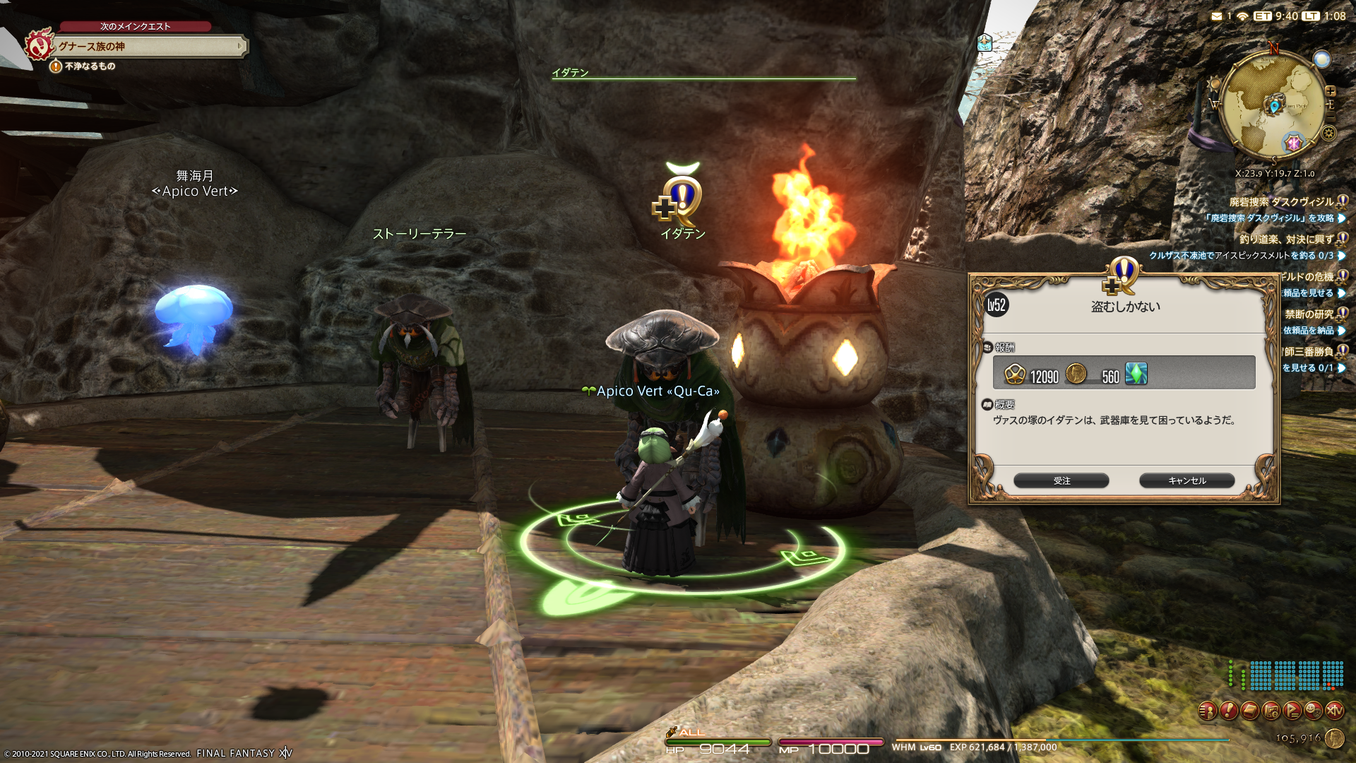 メインクエスト、そんなに急いで進めなくていいかなーと思っていたし、今もその気持なのだけど、進めないと行けないエリアがたくさんあって。クラフターにせよギャザラーにせよ、行けないエリアで採れるものを納品に指定されちゃったりして。進めないと不便なので進めているという感じになっちゃってます。