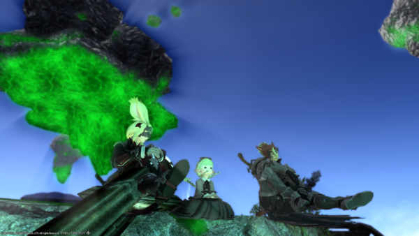 浮島なので戦闘場所から落ちることができるのですよねー。めっちゃ写真撮ったけど、複数人が一緒に落ちるところを撮影するのが難しくてこれが精一杯でした…豆粒。
