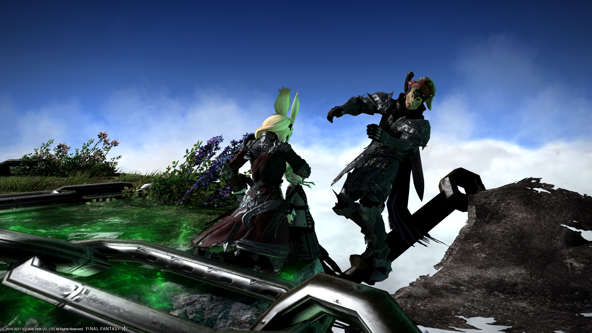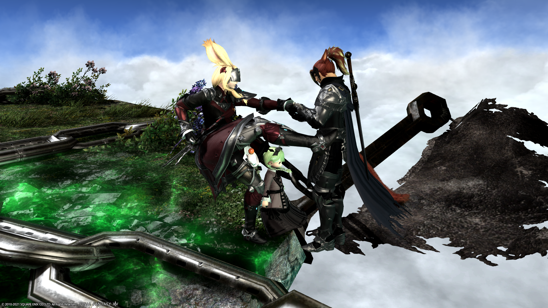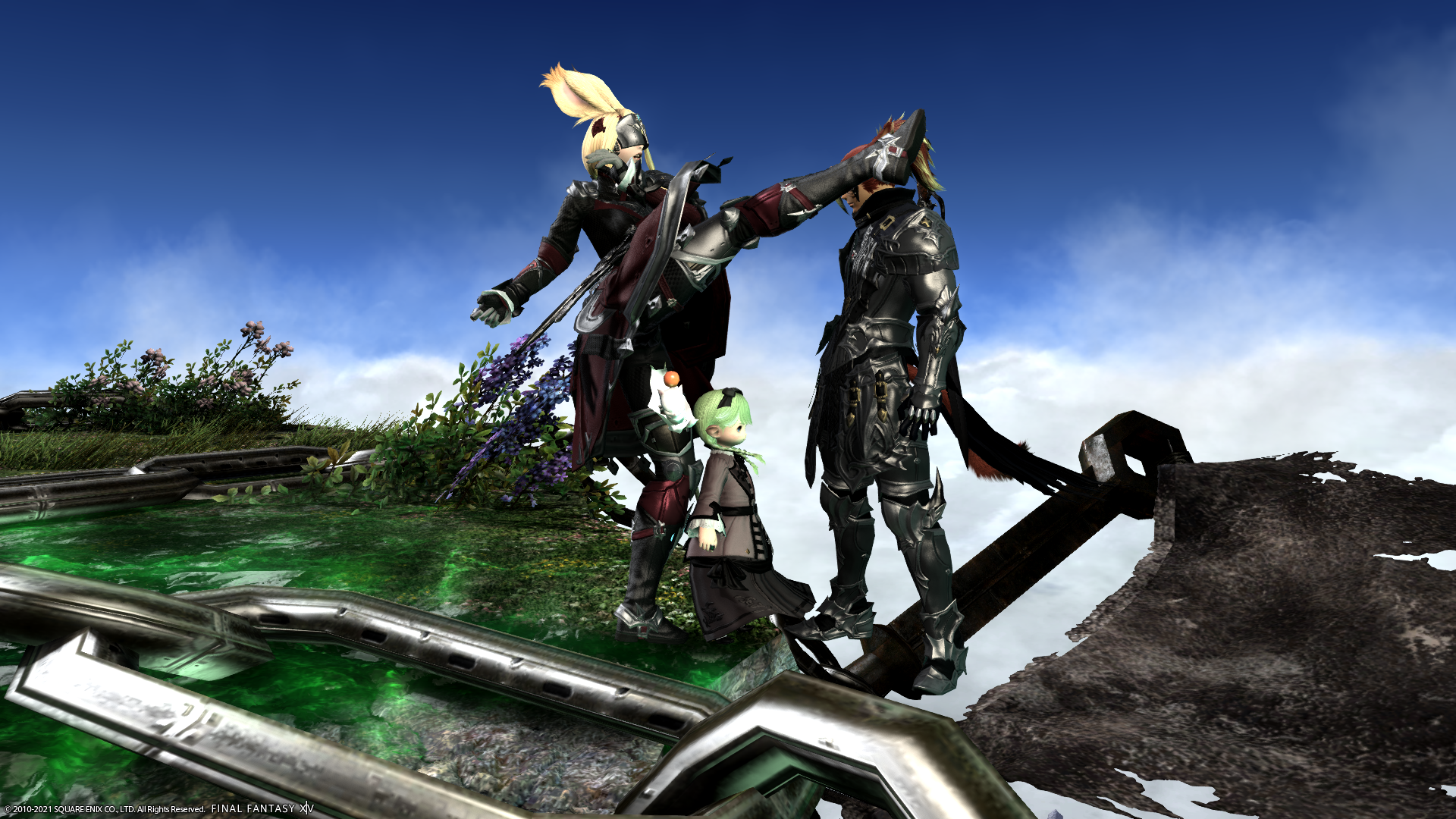 ミコッテ♂さんを浮島から落とそうとケリをいれるわたくし!