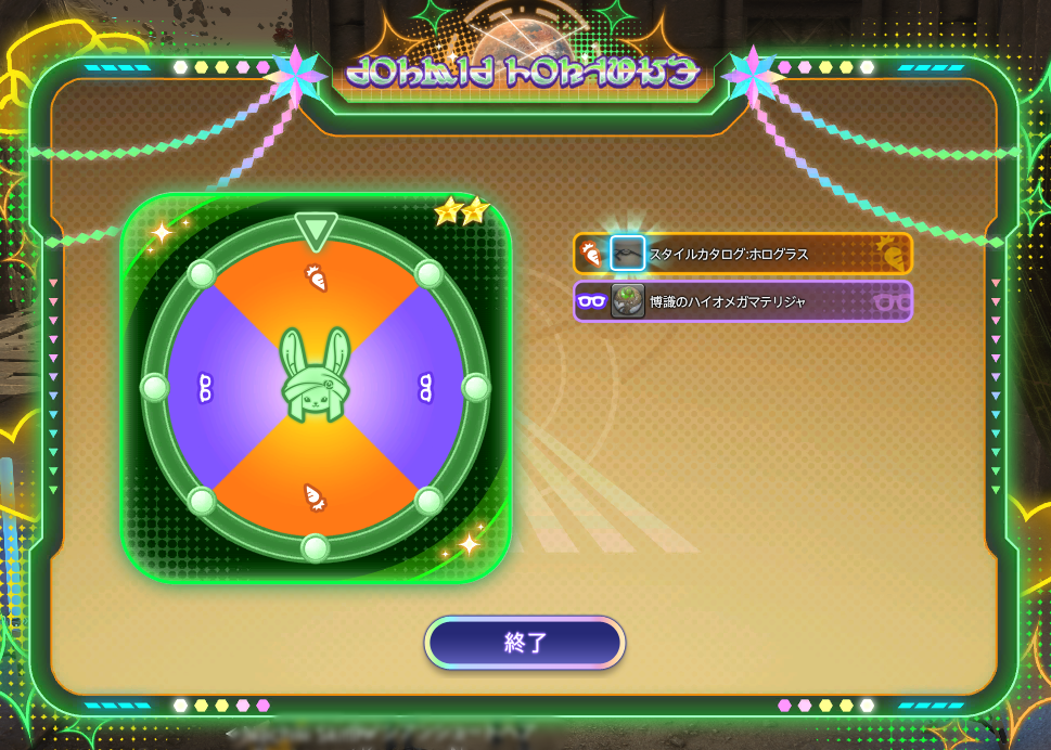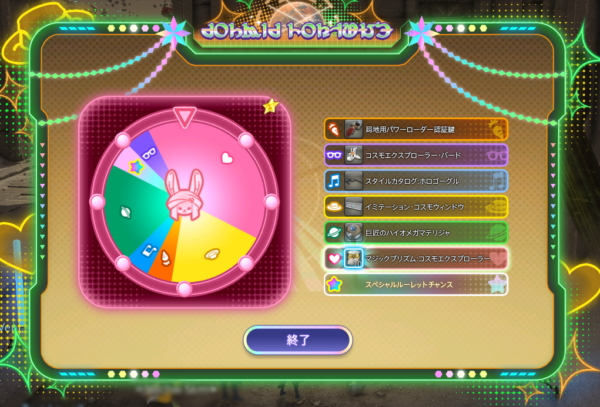 緊急ミッションが終わると、オイジュスクレジットが1500入るので、終わる前にと慌ててコスモフォーチュンを回したのでした。