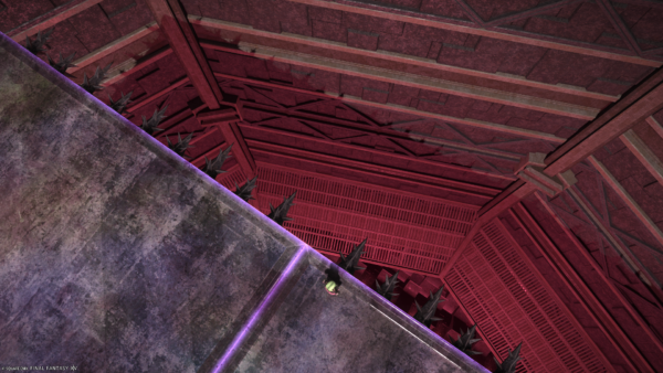 戦闘場所の床の外を覗いたら、なにやらトゲトゲいっぱいでてて怖かった。これは下まで落ちる前にずたずたになっちゃう、こわい。