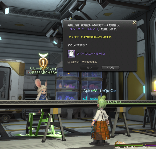 裁縫の道具がv1.2になりました、あと1段階上がれば完成です。ここまでくるとボーナスがあるので早い早い。
