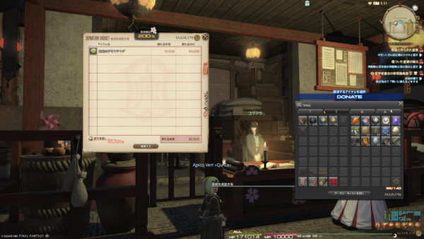 昨日わたくしにしては珍しく、ドマ町人地で野宿をしていたので、まずはコザクラちゃんのところで換金。