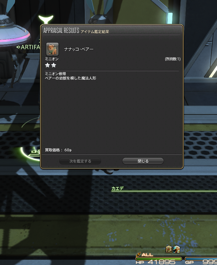今日の遺物探索は古代の記録:銅でミニオンのなナナッコ・ベアーでした。ところでナナッコってなんだろう。
