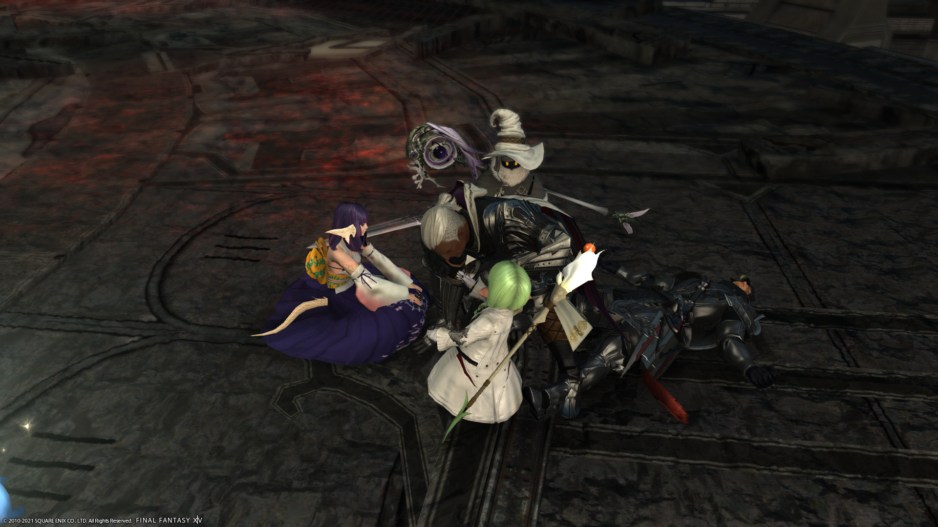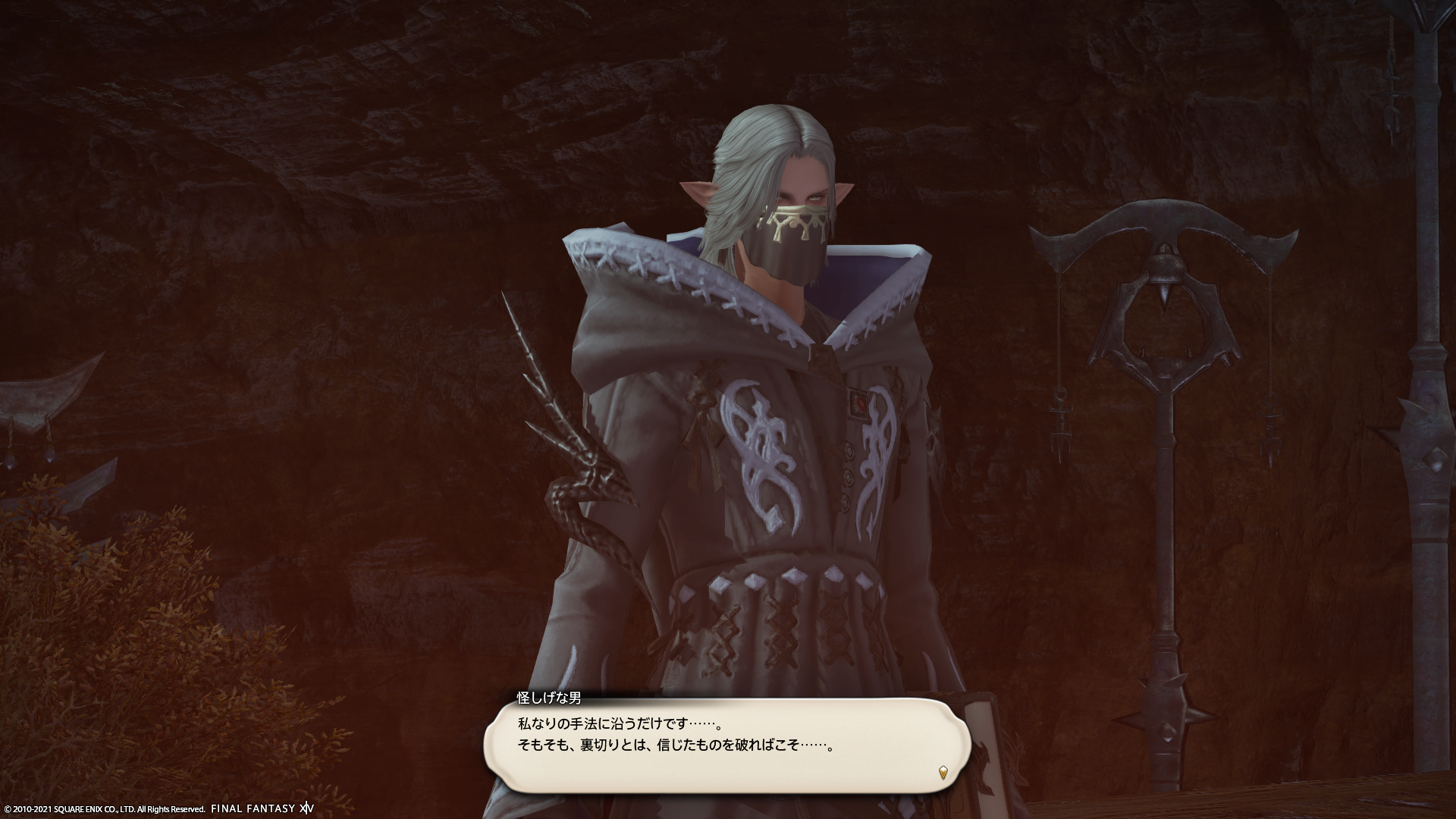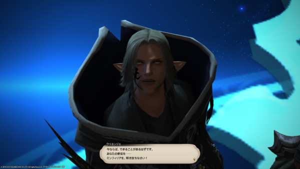 闇の戦士さんたちのいた鏡像世界である第一世界の危機を救うため、自ら命を絶ち原初世界に移動してきたそう。移動する原理はアシエンさんと同じで、エーテルになって移動するということらしい。