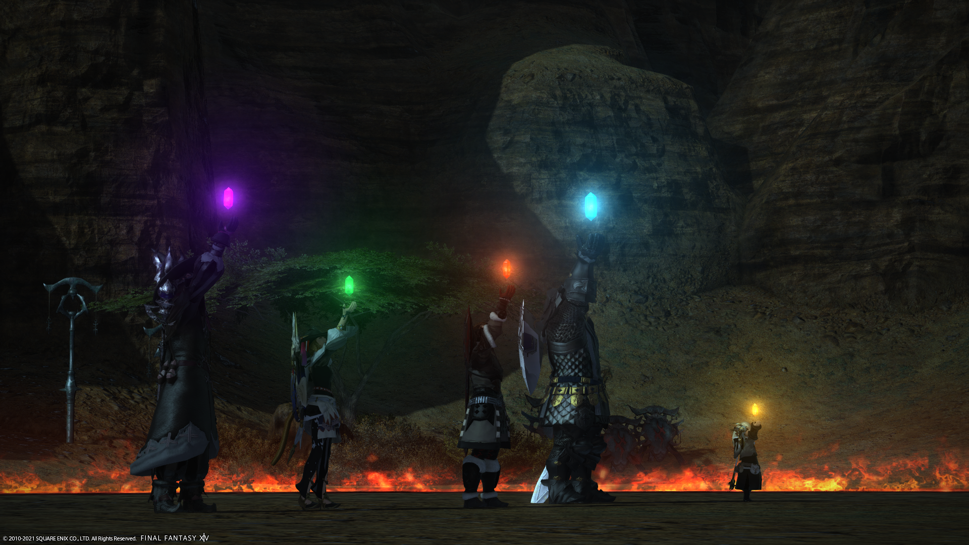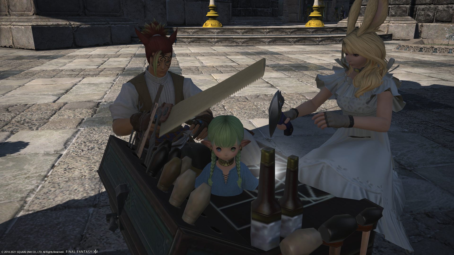 ヤ・シュトラさんとかサンクレッドさんとか、エーテルになって移動すると服とかぜんぶ無くなっちゃうはずで、ミンフィリアさんもそうだと思うけど、杖だけは保存されてた不思議!