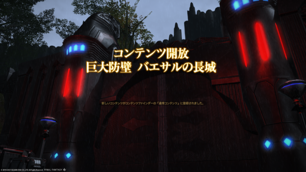 帝国軍の占領下にあるギラバニアは、グリダニアの東部森林と面しており、東部森林にある監視哨より様子を伺っていると…グリダニアとの境界に帝国軍が作った防壁である長城にて戦闘が発生しているとのこと。