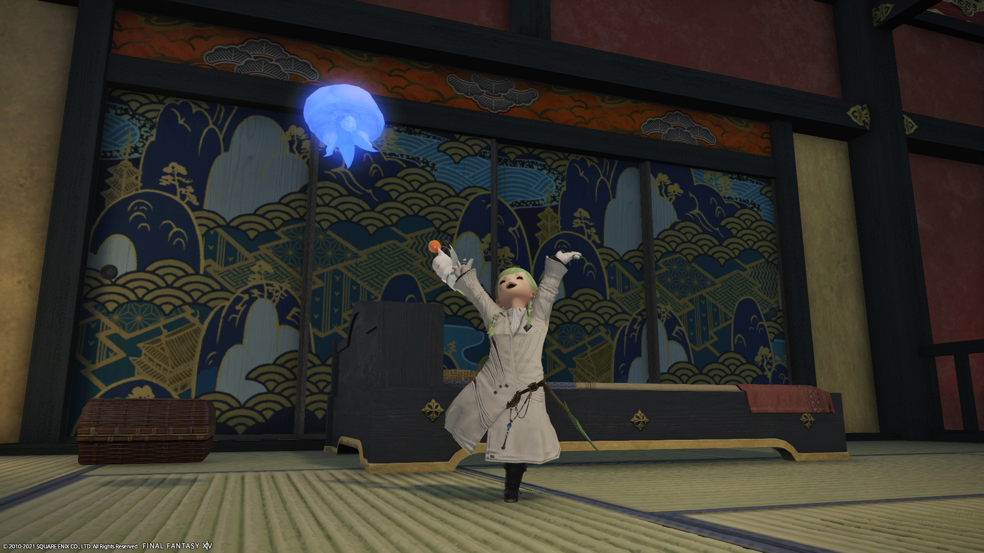 畳の上に靴のまま上がってはしゃぐララフェル、いけない子。