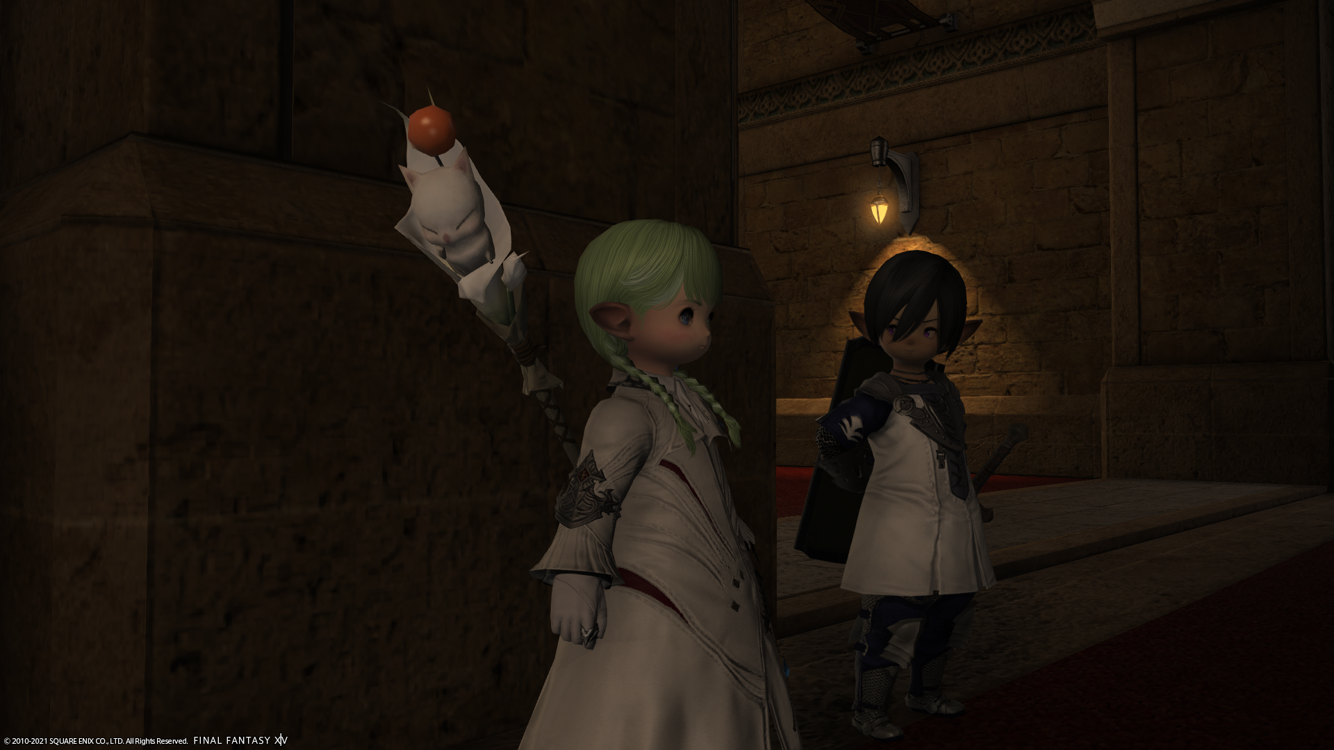 日々節約のため、ウルダハにゆくときは飛空艇でゴールドソーサーを経由してゆくのですが、ウルダハランディングから政府庁だっけ…に出ると警備してるララフェルさんがおりまして、近くにゆくとじーっとこちらを見てくるのですよね。