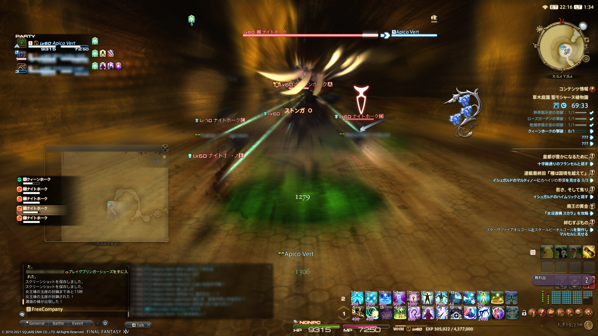 なんともキャラクター要素満点なチョコボが。メインクエスト進行中なので早々に切り上げたいのに、コンテンツ的なものを進めないと区切りがつかないみたいで困った…。作業的にこなして乗り切ったけど、地道に通う系のコンテンツなのかなぁ…これ。