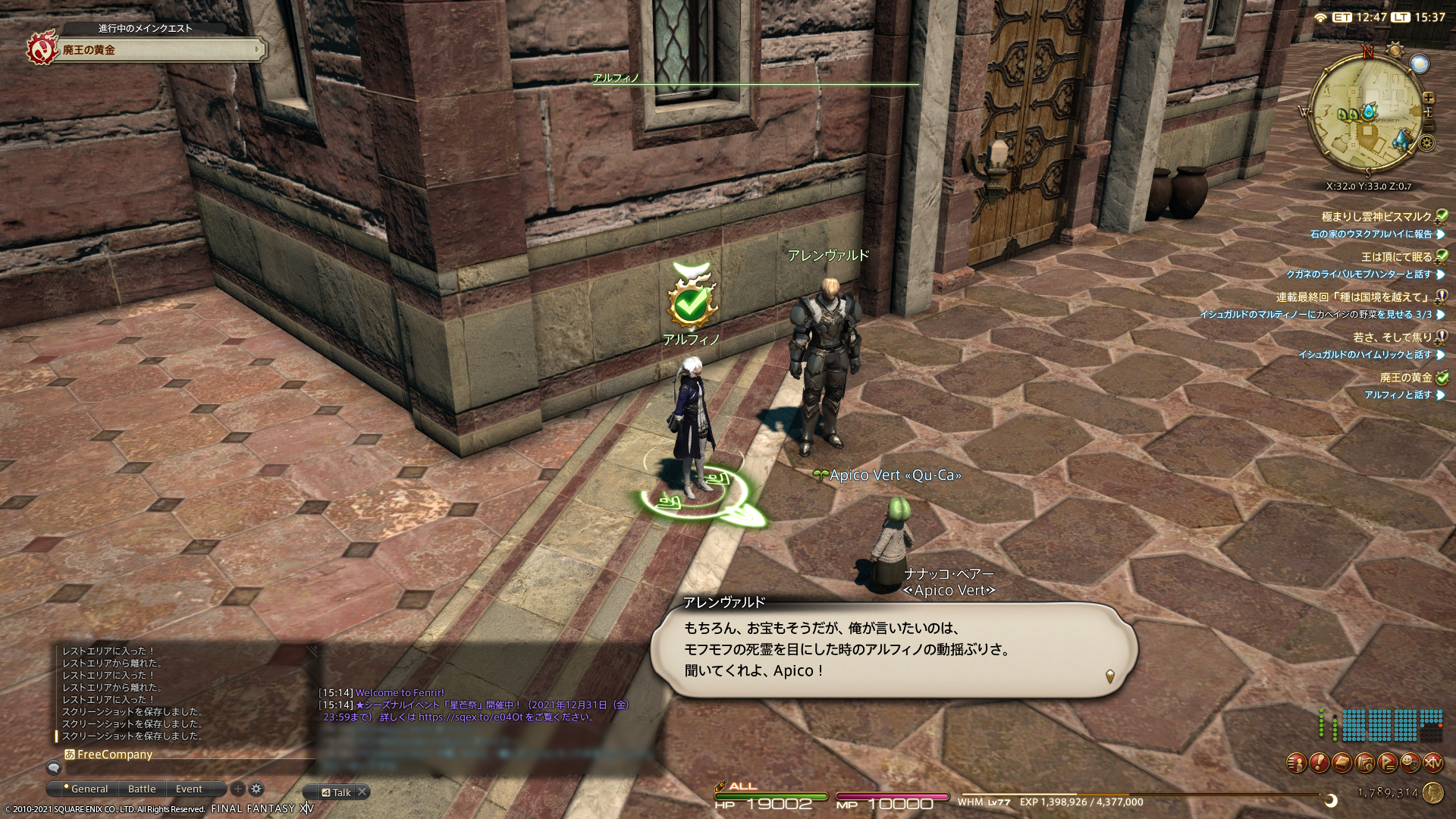モグモフの死霊がコワイことをバラされるアルフィノさん…非科学的な要素に弱いのですね。